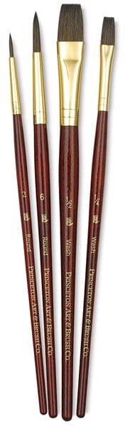 This natural camel set contains four short handled brushes: Round 2 and 6, and Wash 1/4 and 1/2.