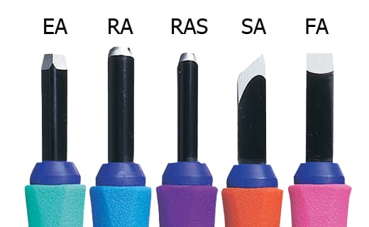 • Carving Tools with rubber grip.