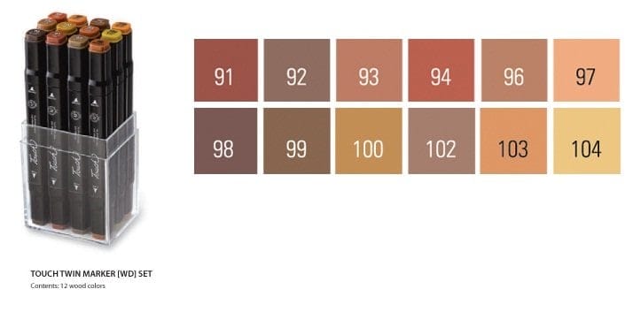 Shinhan Touch Marker “WD” (Wooden) Color – Set of 12