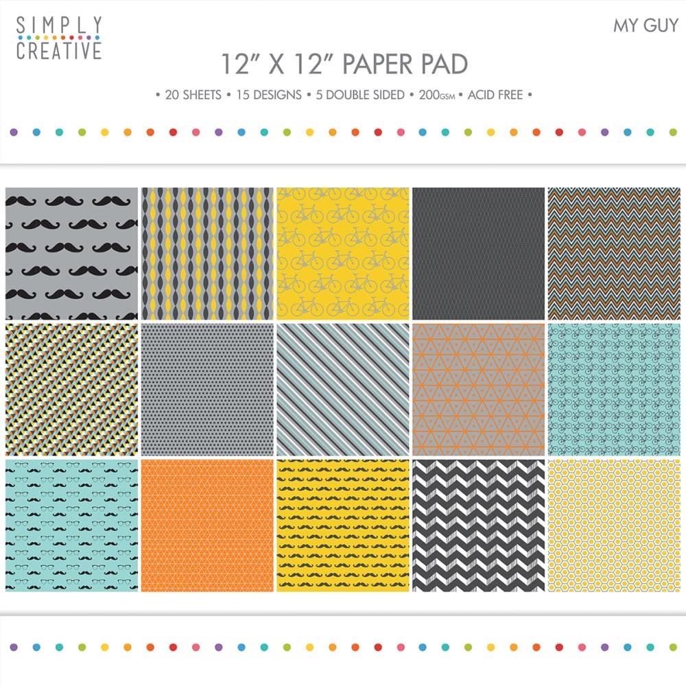 Simply Creative-My Guy Paper Pad. The ideal addition to any paper crafting project! This pad contains twenty 12×12 inch sheets in fifteen different designs. Acid free. Imported.