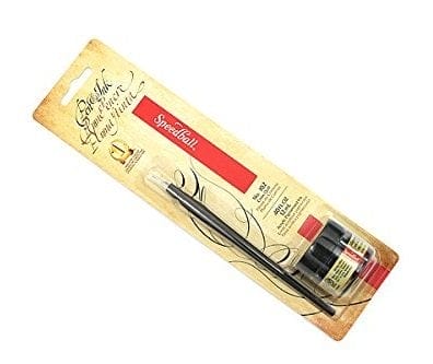 Speedball has been a trusted name in handcrafted nibs and pens for the calligrapher, letterer, and drawing artist for over 100 years. This is a great starter kit for calligraphy, and pen and ink drawing. The set includes: one No. 102 Crow Quill nib holder, one No. 102 Crow Quill nib, and one 0.4 oz (12ml) bottle of black Pigmented Acrylic Calligraphy Ink. Handcrafted in the USA, the nib is flexible, and features a very fine point that is ideal for making fine lines. Speedball’s rich, vivid calligraphy inks are intermixable, waterproof, lightfast, acid-free, and archival, giving artists and crafters the best possible results.