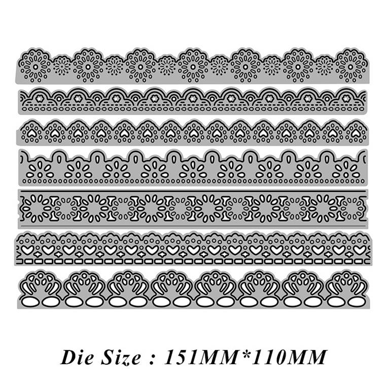 Dimensions of complete die set – 15 cm by 11 cm approximately, 1 of the borders measures 15 cm by 1.5 cm for reference