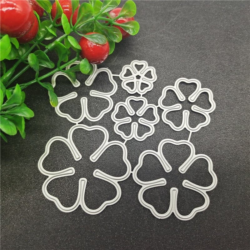 Dimensions – Complete die set measures 10.5 cm by 9.5 cm approximately, largest flower for reference measures 5.5 cm in diameter approximately
