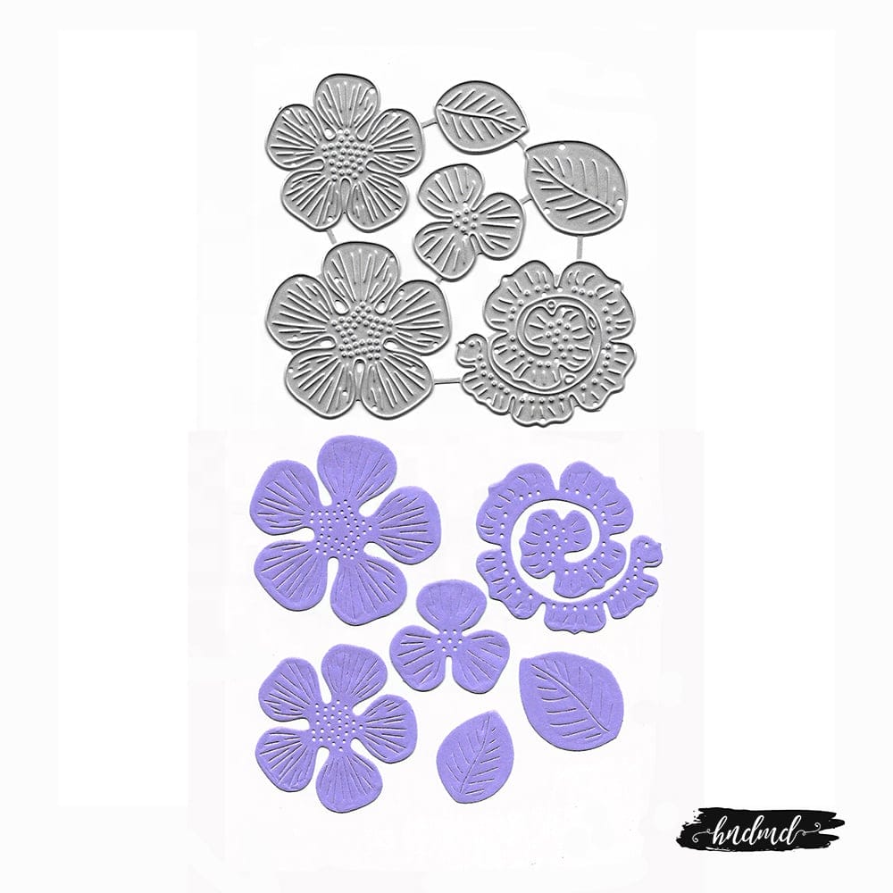 Steel Dies - 5 petal Flowers and leaves (Set of 6 dies) Steel Dies - 5 petal Flowers and leaves (Set of 6 dies)