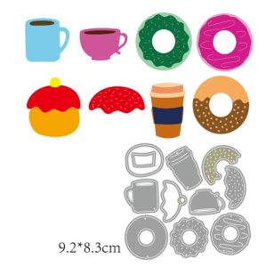 Dimensions – Entire die set measures approximately 9.3 cm by 8 cm approximately, you may need to cut the individual pieces using pliers or hand. For reference one of the donut measures 3 cm in diameter