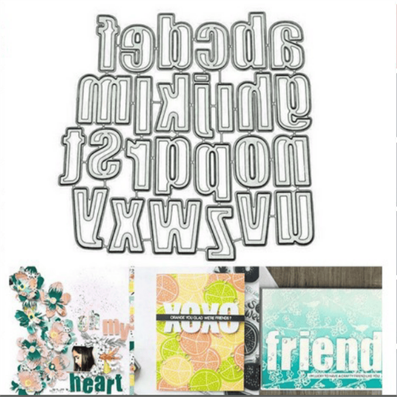 Dimensions – The complete die set measures 12.5 cm by 13.5 cm approximately, Size reference, Alphabet A measures 1.7 cm by 2.5 cm approximately