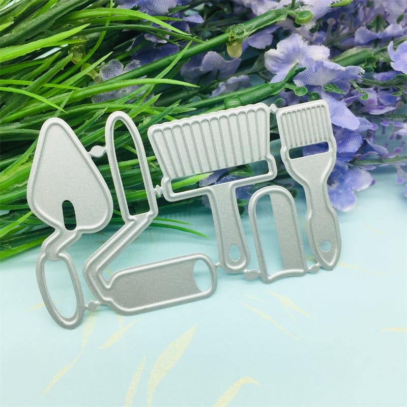 Dimensions – Complete die set measures 5 cm by 7 cm approximately, for reference, the paint roller tool measures 3 cm by 4.7 cm