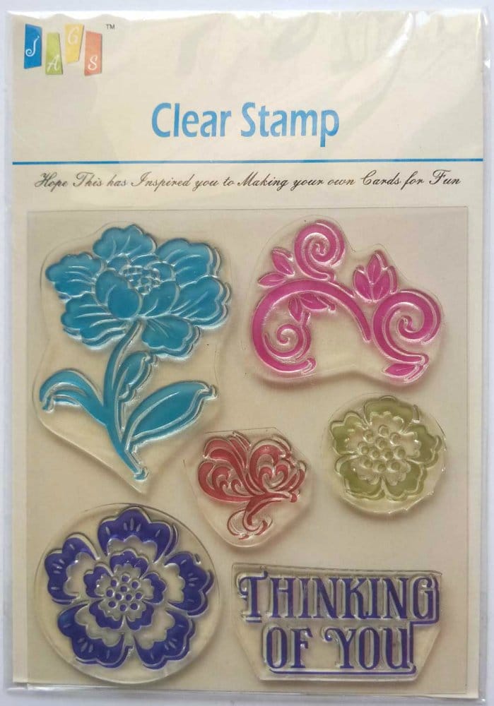 This 4.5 by 4 inch set and contains 6 pieces of individual stamps.