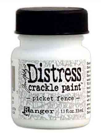 Decades of Distress in one simple step! Tim Holtz™ Distress Crackle Paint™ is a unique one-step paint that cracks as it dries. With a convenient, built-in applicator brush, add instant aging to cardstock, chipboard, paper mache projects and more. Coordinates with the fabulous palette of 24 Distress Inks™ and Distress Embossing Powders™. The color is Picket Fence
