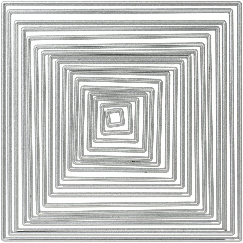 This package contains Nesting Squares: a set of 17 dies measuring between .25x.25 inches and 4.25×4.25 inches.