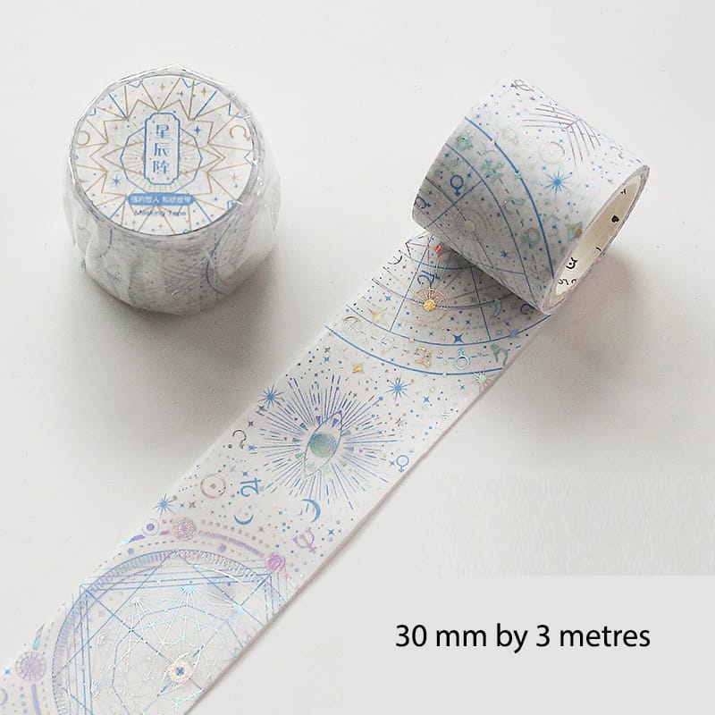 The listing is for a single washi sticker roll measuring 30 mm in width and 3 metres in length as shown in the image. It contains metal foil accents