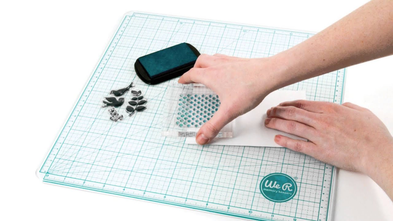 WE R MEMORY KEEPERS-Glass Cutting Mat. So much more than a cutting mat, perfect for cutting, stamping and mixed media. Features smooth and precise cutting, a durable work surface, tempered glass, angle mea surement lines, paint and blending pallet, safe for hot glue, clean surface for stamping, non-skid feet, easy to clean thirteen inch grid and has inch and metric measurements. This package contains one 14×14 inch tempered glass-cutting mat with a full 13×13 inch measuring grid. Imported.